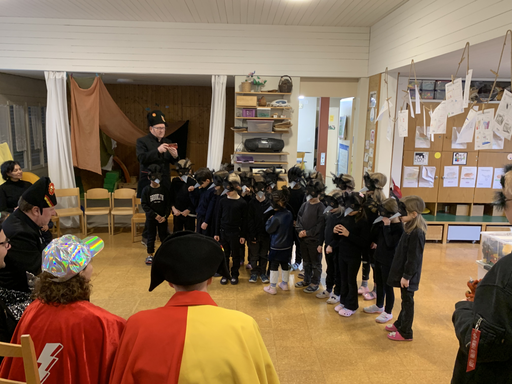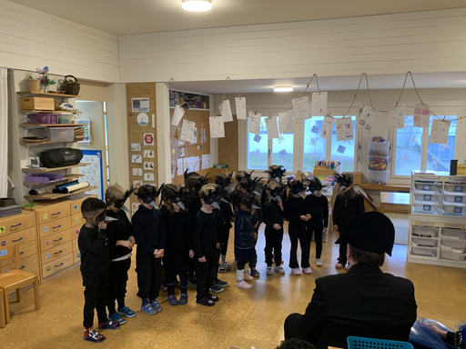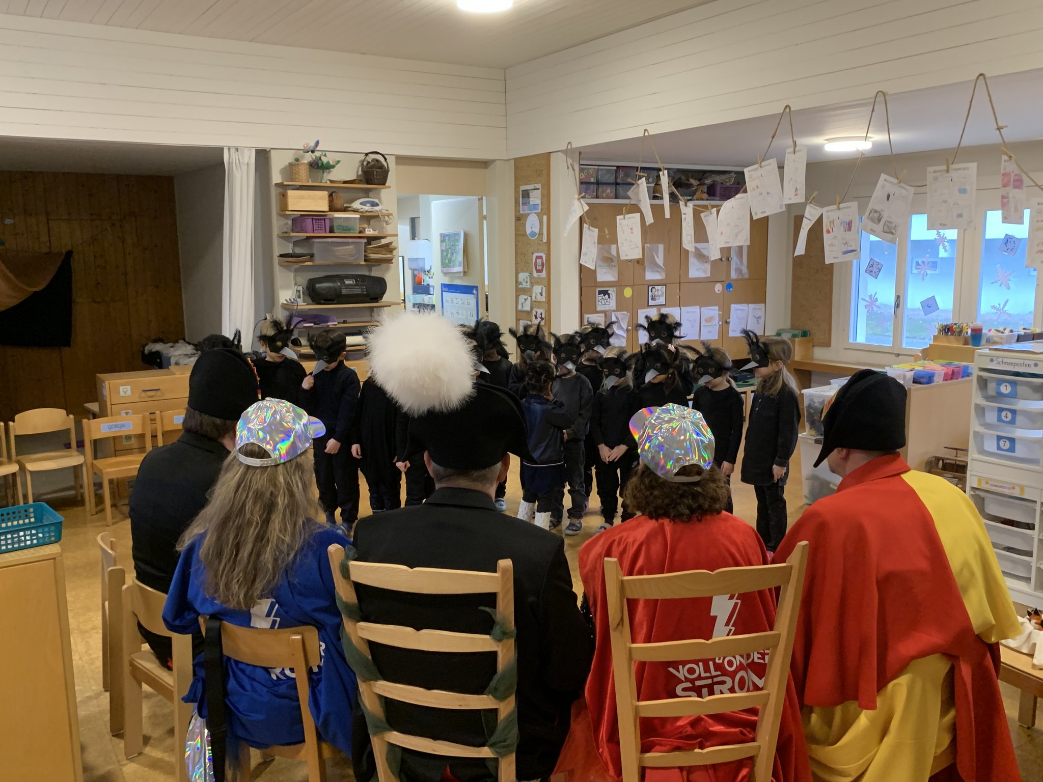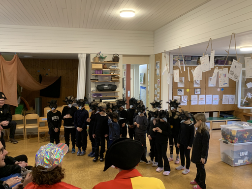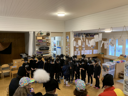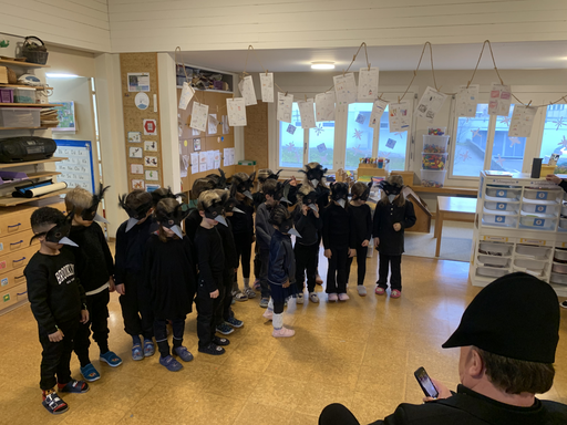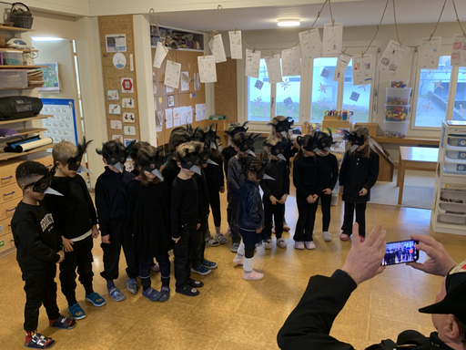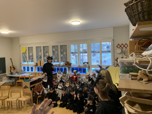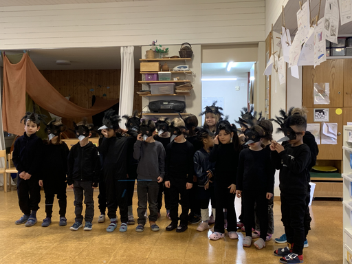 Am Mittwochmorgen 04.02. verwandeln sich die Kinder der Bachstrasse 1 in Raben des Winterwaldes.