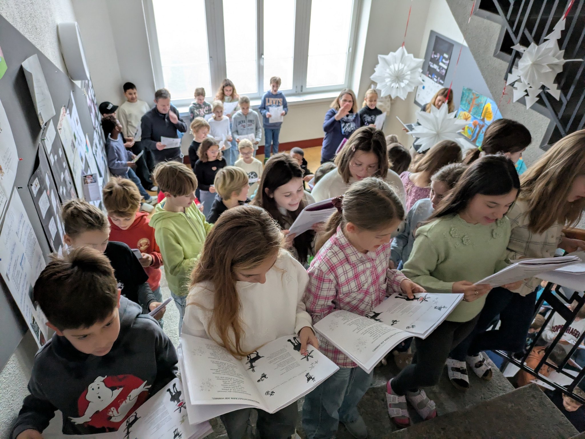 In den letzten Wochen wurden wir zweimal mit einem schönen Adventssingen der 3. und 4. Klassen überrascht. Auf den Treppen im Schulhaus sangen sie Weihnachtslieder und zauberten vielen ein Lächeln ins Gesicht.