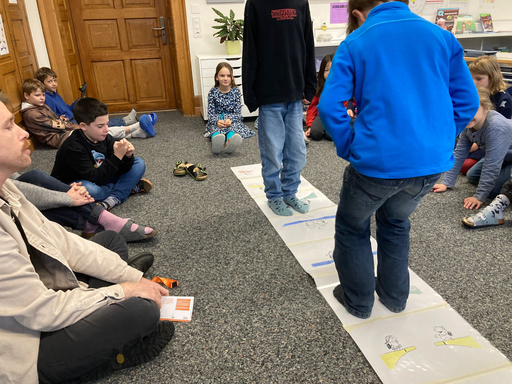 Zwei Kinder spielten in einem kurzen Rollenspiel einen Streit nach der grossen Pause vor. Die Klasse schaute zu und lernte anhand dieses Beispiels die Friedensbrücke kennen.