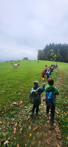 Bei frischer Herbstluft, buntem Laub und guter Laune wanderte jede Stufe ihre eigene Route hinauf. Unterwegs wurde gelacht, geschnattert, geschnauft und natürlich auch immer wieder eine kleine Znünipause eingelegt. Ob durch den Wald, über Wiesen oder auf schmalen Pfaden: Der Weg war für alle ein kleines Abenteuer.