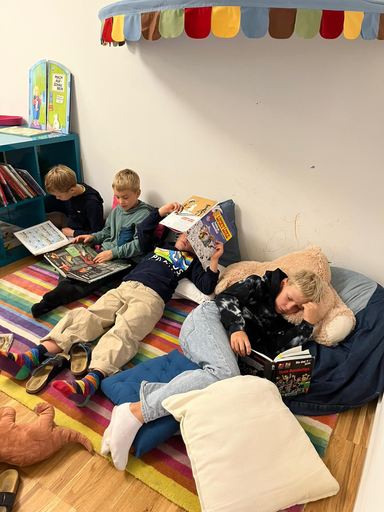 Zu Beginn suchten sich alle Kinder einen passenden Platz, um in Ruhe zu lesen. Für die Jüngeren gab es eine besondere Überraschung: In fünf Gruppenräumen wurden Bilderbücher vorgelesen. Danach durften auch sie selbständig weiter schmökern.