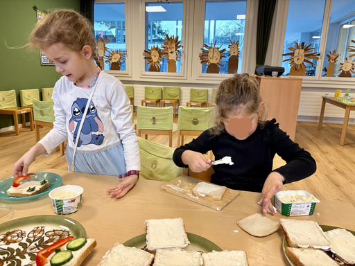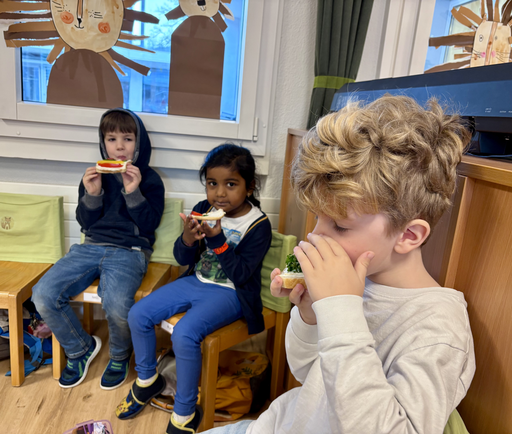 So gibt es bei uns monatlich einmal das “Monatsznüni” - ein besonderes Znüni, bei welchem die Kinder manchmal selbst was mitnehmen oder die Lehrpersonen Zutaten organisieren.