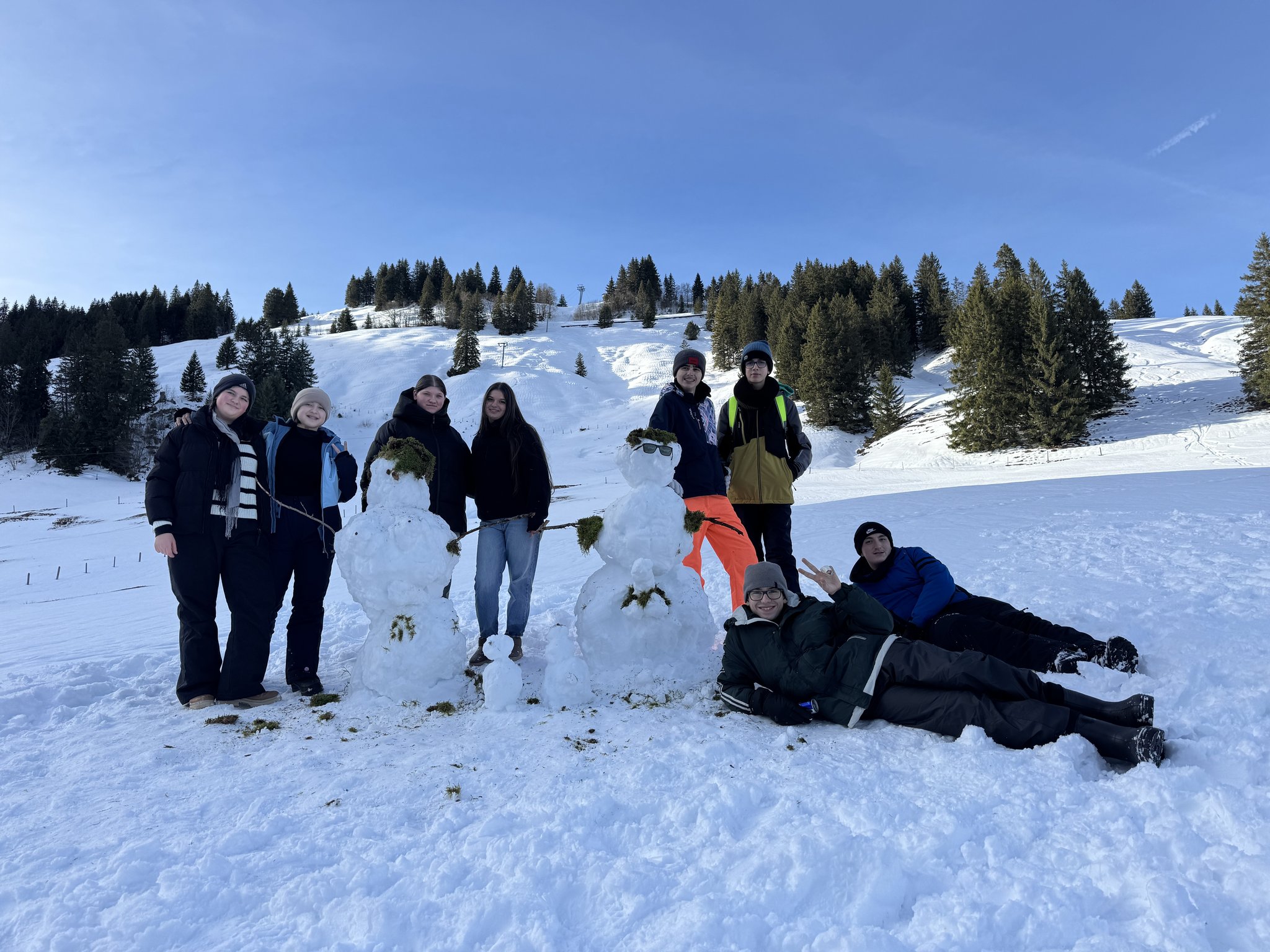 Während die skifahrenden Gruppen die Abfahrten genossen, bewies die Winterwandergruppe Kreativität und baute Schneefrauen und -männer.